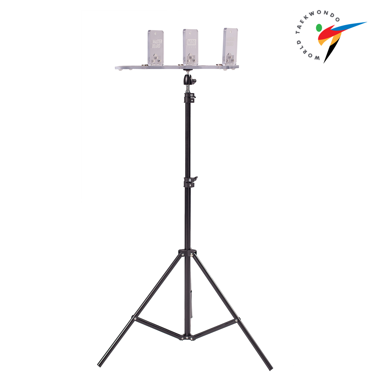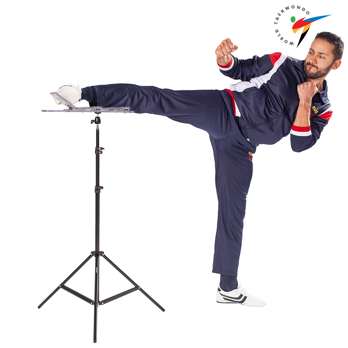 Trepied Placa Kick Master Antrenament Taekwondo. Trepiedul este confectionat din material foarte rezistent. Suportul este reglabil si pe el se poate monta placa profesionala de antrenament. Avantajul acestui suport este rglabilitate, echilibrul sau si nu ocupa spatiu mult. Se poate strange si depozita usor.